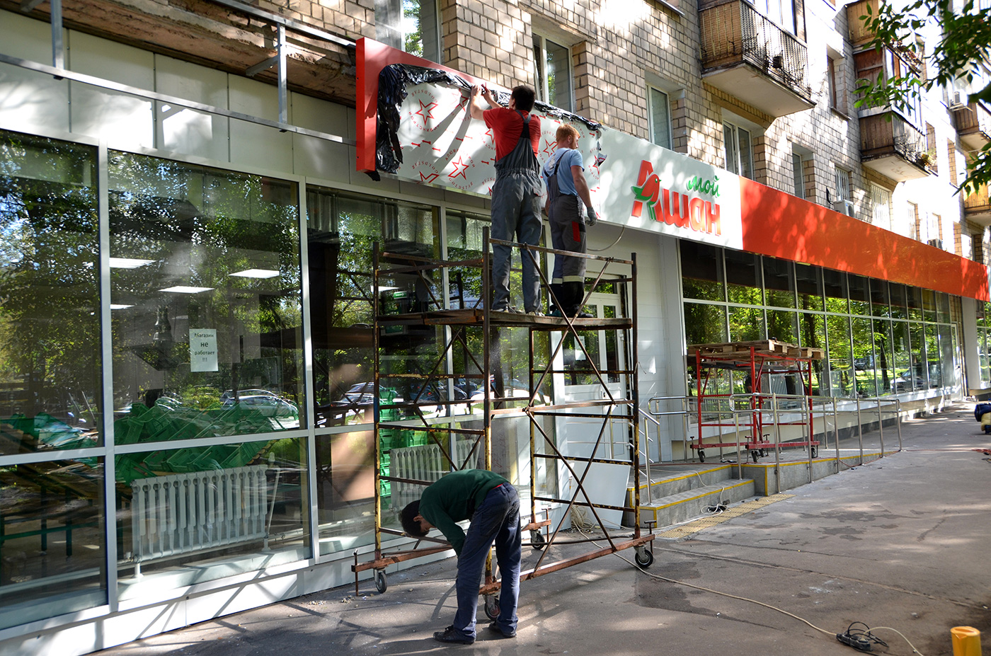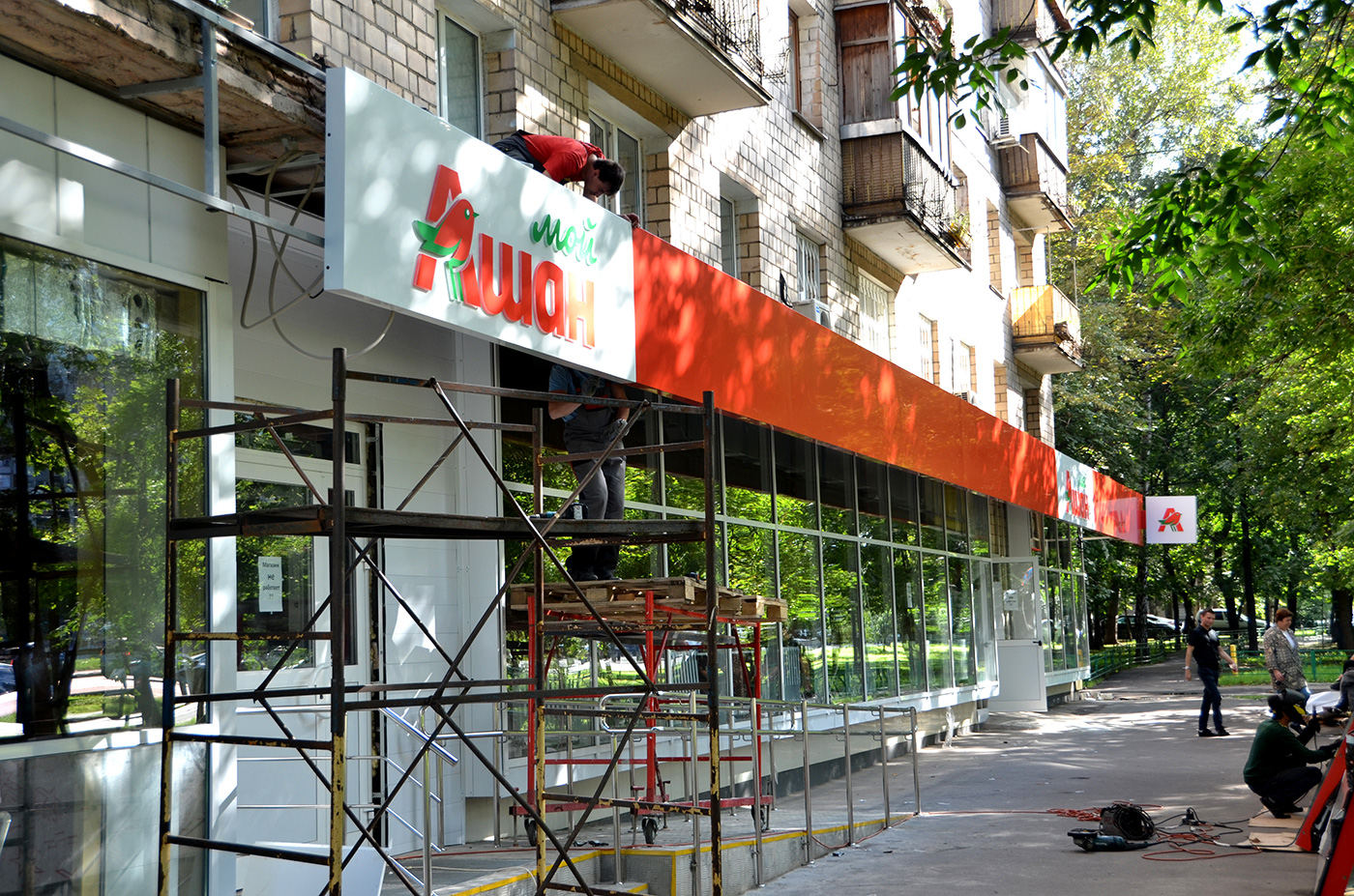 Наружная реклама пилотного магазина сети «Мой Ашан»