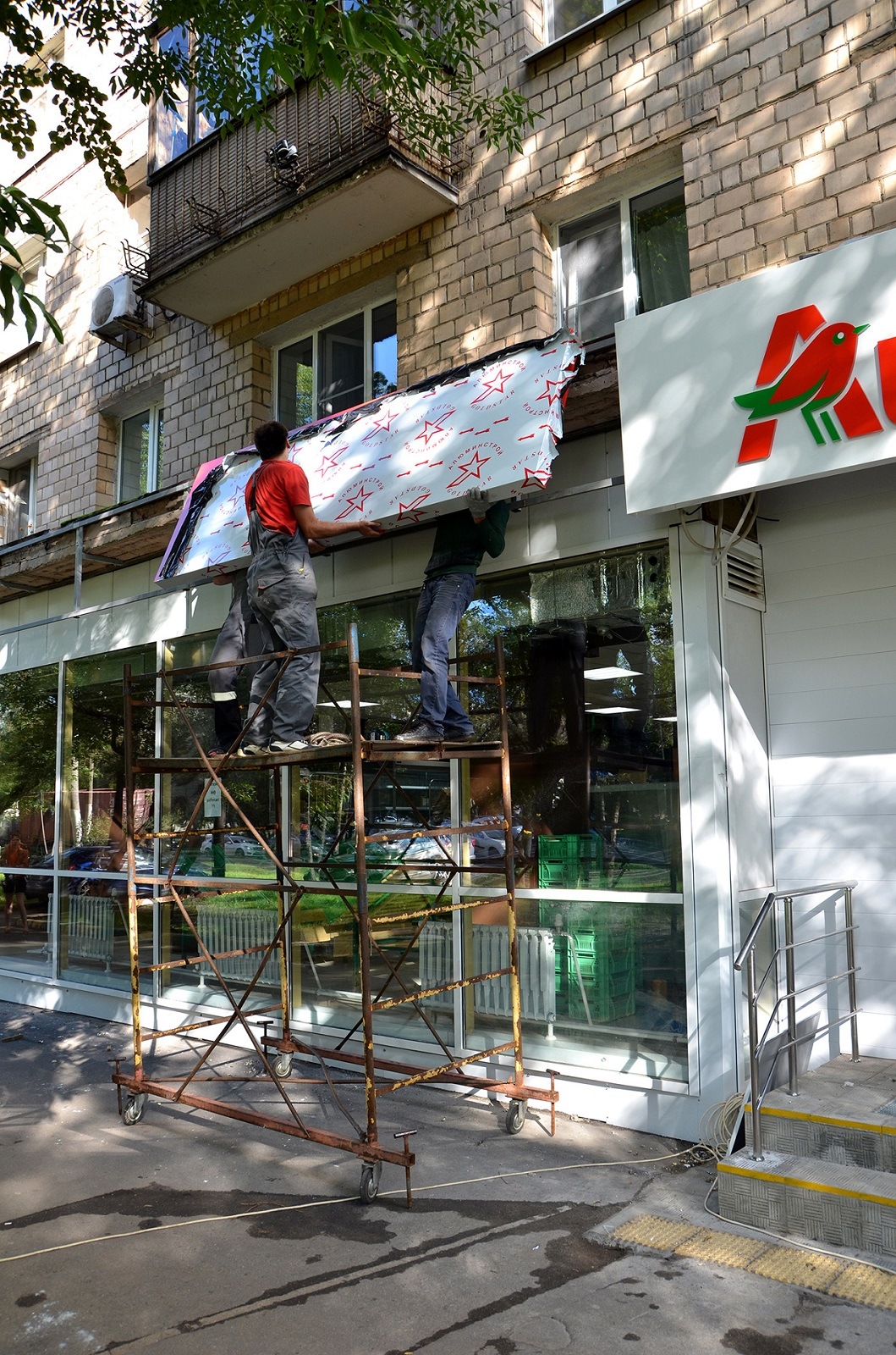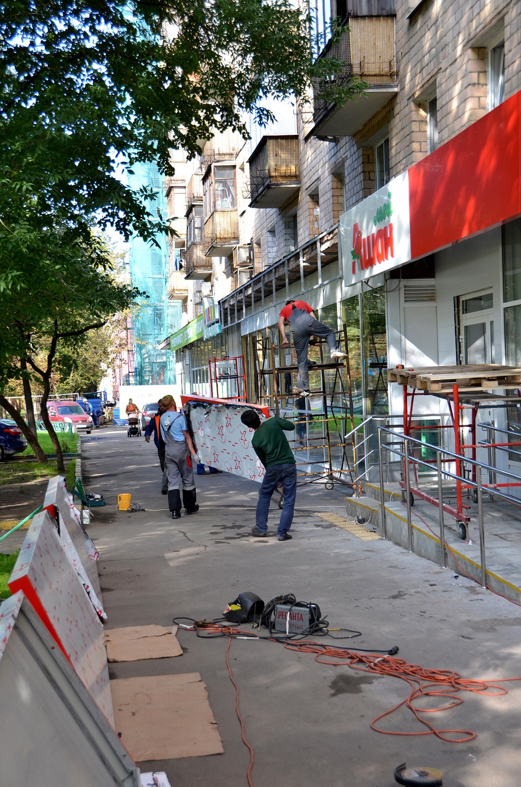 В рамках этого сотрудничества мы произвели изготовление наружной рекламы и её монтаж, для пилотного проекта сети «Мой Ашан» по адресу: г. Москва ул. Рогожский Вал 13 к.8. Особенностью данного проекта является фриз длиной 60 метров.